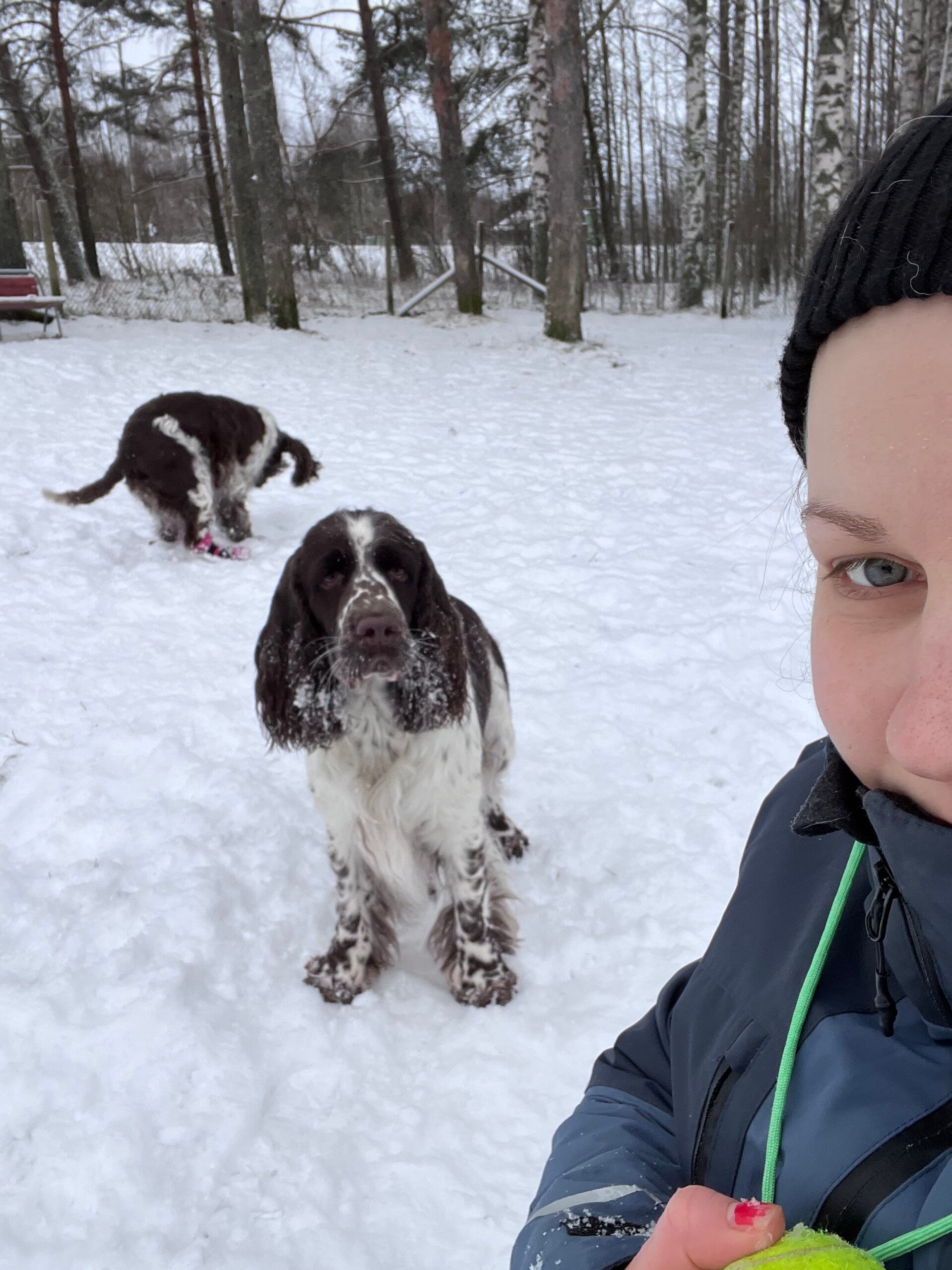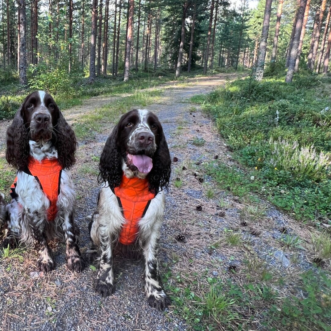 Koirien kanssa kuljettiin paljon metsässä, ja osallistuimme myös muutamaan MEJÄ-kokeeseen. Kouluttauduin lisäksi vastaavaksi koetoimitsijaksi (mejä) ja toimin Springerspanielit Ry:n MEJÄ-kokeessa koetoimitsijana.
